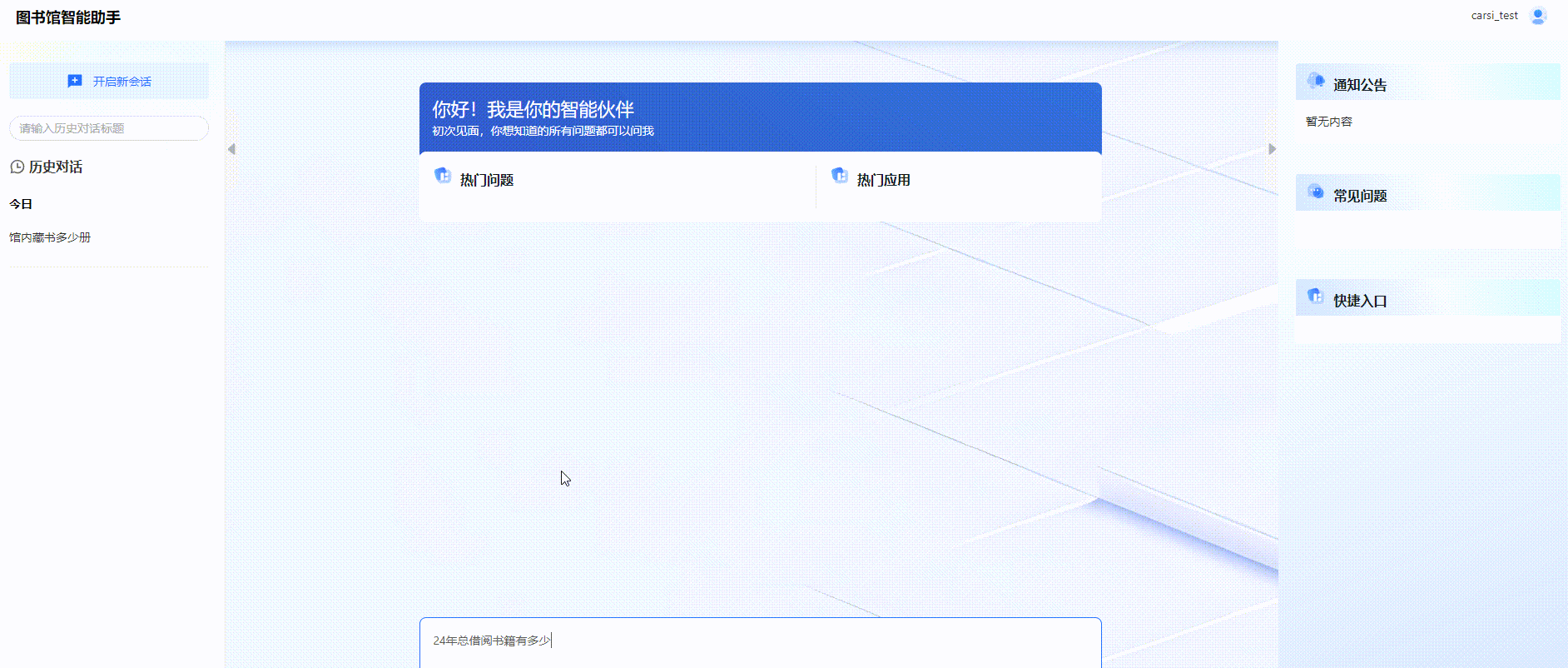 我是“图书馆智能助手”,我可以提供图书借阅相关的查询与统计分析,管理人员可以通过我查询借阅记录、指定时间内的借阅情况统计与分析、借阅者的偏好分析等,推动图书管理向智能化、精准化迈进。