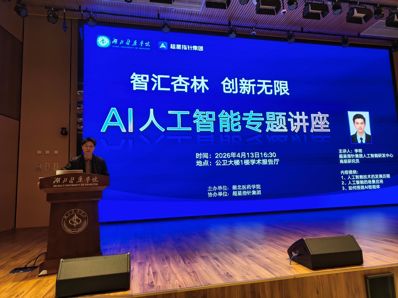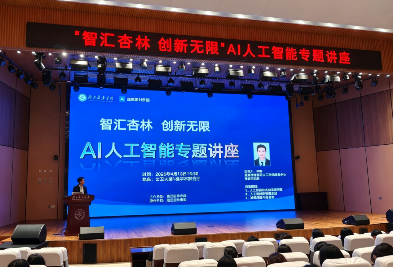 4月13日下午,校团委、信息网络中心在公卫大楼一楼学术报告厅联合举办AI人工智能专题讲座,300余名师生到场参加。此次活动是“智汇杏林,创新无限”系列活动的开篇,拉开了“湖医药杯”2026年度校园AI智能体创新应用设计大赛的序幕。